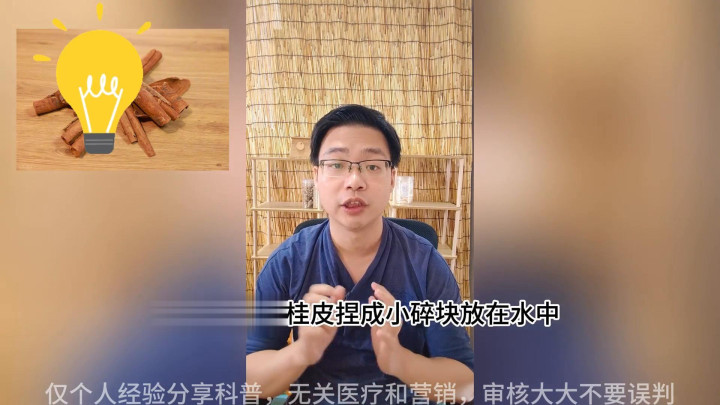 ·第三个拿一点桂皮捏成小碎块放在水中。